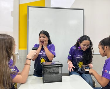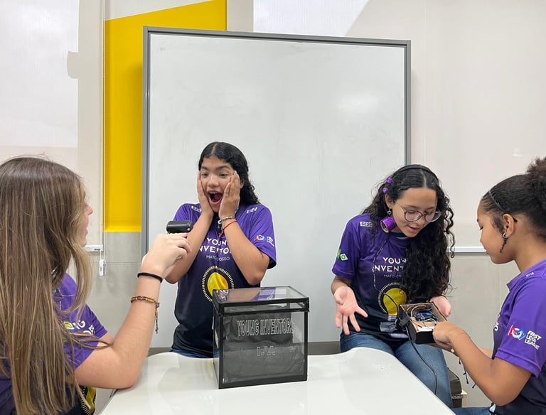 A equipe Young Inventors transforma criatividade em soluções, unindo tecnologia e robótica com paixão e inovação.