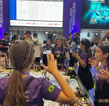 Competimos em eventos de robótica, como a FIRST LEGO League Challenge, promovendo aprendizado.
